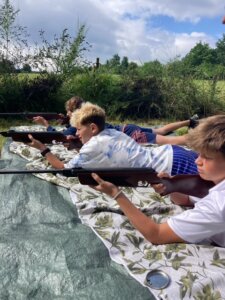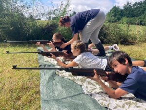 „Materiál“ si dopoledne vyšel na procházku, na kterou se připojila naše skvělá hlavní vedoucí, aby ověřila jejich znalost orientace v mapě i v terénu. Odpoledne si také zastříleli, ale zkusili si rozhodně více poloh. Začínalo se polohou v leže, které většině nepřipadala moc těžká. Následovala poloha v kleče, při které se ukázalo, kdo se málo protahuje a velká část oddílu se ani do polohy nedostala. Jako poslední se střílelo ve stoje, kde už pomalu docházely síly. Nicméně výsledky byly velmi dobré a v následujících dnech proběhnou zkoušky.