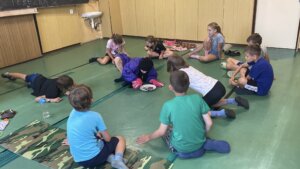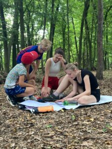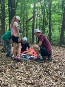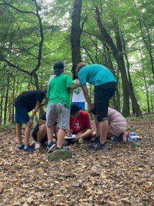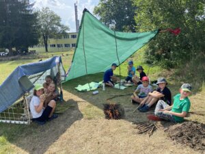 Včera jsme celý den trávili v oddílech hraním her, trénováním tábornických dovedností a procházkami po okolí.