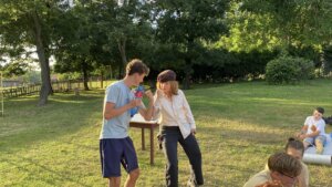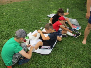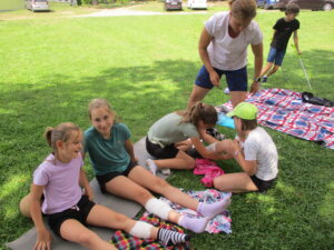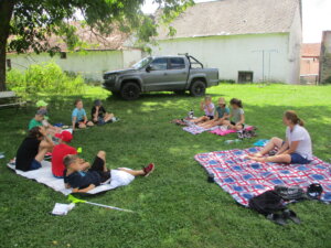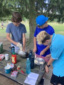 Dopoledne se dva nejstarší oddíly spojily, aby si zahrály slavné Hunger Games. Proběhly už 13. a 14. hry a našly svého vítěze a vítězku. „Mentosky“ a „Velká Desítka“ dopoledne hrály hry a „Mentosky“ si dokonce střihnuly další azimuťák, který zvládly na výbornou.